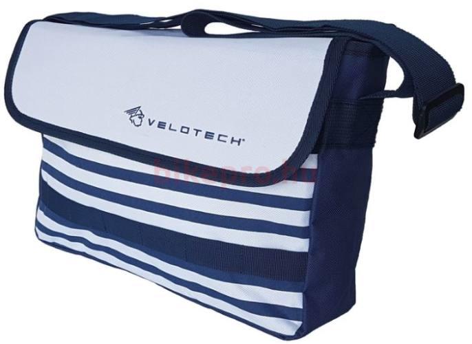 Velotech Navy váll- és kormánytáska, 33x25x9 cm, 7,5L, kék-fehér Velotech tengerész-csíkos kormánytáska. Anyaga: 600D vízlepergető polyester Rögzítése: 3 tépőzárral. Vállpánttal válltáskaként is használható. Szín: Kék-fehér csíkos Méret: 33 x 25 x 9 cm Űrtartalom: 7,5 liter Belső habszivacs védelem. Egy nagyméretű rekesz a könnyű pakolhatóságért. Zipzárral