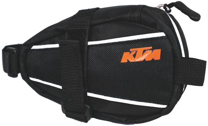 IGÉNYES ÉS ELEGÁNS NYEREGTÁSKA NAGY SŰRŰSÉGŰ (1680D) VÍZZÁRÓ SZÖVETBŐL MEREVÍTÉSSEL, SELYEM BÉLÉSSEL FÉNYVISSZAVERŐ CSÍKKAL ÉS HÁTSÓ LÁMPA RÖGZÍTŐ SZALAGGAL: MÉRETE: 16X7X7 CM SÚLY 113 GRAMM