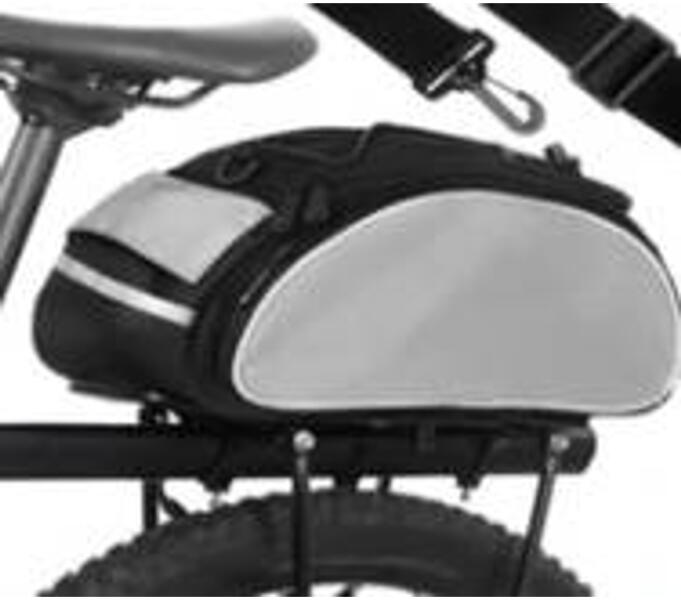 Többfunkciós kerékpártáska a csomagtartóra szerelve. Hosszabb biciklitúrák alkalmával rendkívül hasznos, ruhákat, apróságokat, élelmiszereket pakolhatunk bele. Kiváló minőségű anyagokból készült. 1 fő rekesszel rendelkezik, mindkét oldalán cipzáras zsebekkel . A táska végén egy további, kisebb tépőzáras zseb található. A táska fülén dugós gumiszalagok talál