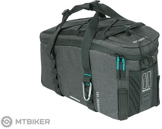 Az S Basil Discovery 365D M egy sporttáska a hordozó tetejére. A felső fekete melange huzat vízlepergető poliészterből készült, térfogata 9 liter. Alkalmas női és férfi kerékpárokhoz, és kényelmes fogantyúval rendelkezik. A táska egy zárófülvel is rendelkezik, rugalmas zsebbel és praktikus zsinórral. Így a helyükön tarthatja a dolgokat. Több hely kell a palackok szám
