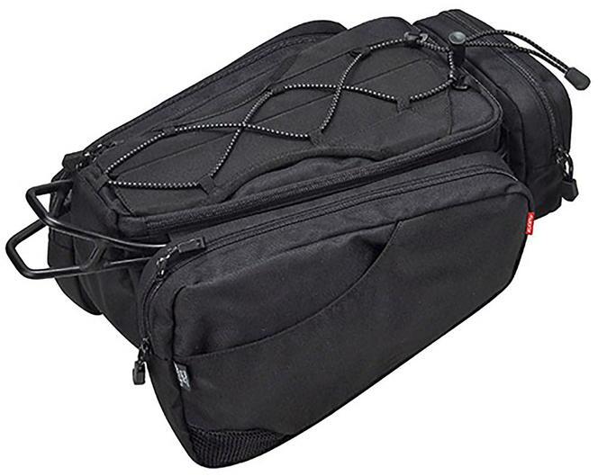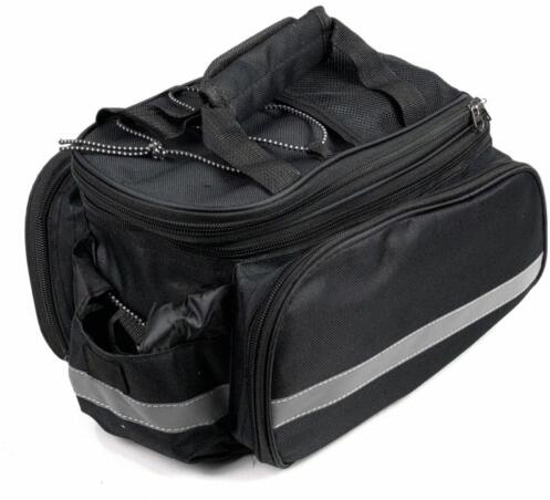 Hátsó kerékpáros táska Készült 600D poliészter/ Poly honeycomb /Nylon 210D anyagokbólBővíthető két oldalzsebBelső hálós zsebGumiszalag a táska felső részén3M fényvisszaverő szegélyHátsó lámpa felfogatási lehetőségTépőzáras rögzítésLevehető vállpánttalŰrtartalom 15 lMéret: 32,5cm x 28cm x 19cm
