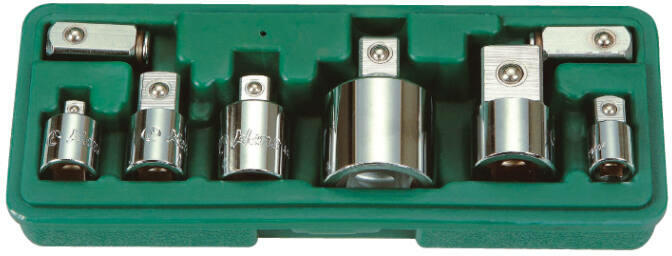 HANS vegyes átalakító készlet 8 részes 9608 Cr-V az iSzerszámnál. Professzionális, ipari minőségű HANS vegyes átalakító készlet 8 részes 9608 Cr-V. Anyagösszetétel: Chrome-Vanadium (Cr-V). A 8 részes készlet tartalma: 1/4">3/8" (62Nm) 3/8">1/2" (202Nm) 3/8">1/4" (62Nm) 1/2">3/8" (202Nm) 1/2">3/4" (512Nm) 3/4">1/2" (512Nm) 2db 1/2" négyszög betét. Alacsony n