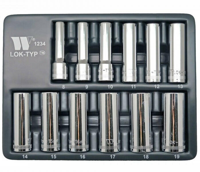 WELZH WERKZEUG Lok-Typ Dugókulcs készlet 3/8" 12 részes spec. 6 lap hosszú 8-19 mm -Welzh (1234-WW) Welzh - Werkzeug Speciálisan kialakított dugókulcsfej készlet 12 darabos készletben. A kopott, elnyalt anyák eltávolítására készítették A kopott, elnyalt anyák eltávolítására készítették Lok-Typ típus, a legfeljebb 85%-ban elhasználódott " elnyalt" csavarok eltávolíthat
