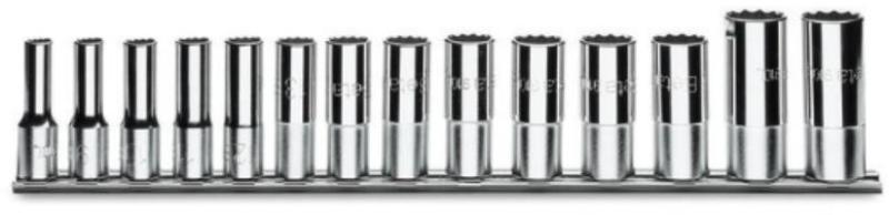 A Beta 14 részes 12 szögű hosszú dugókulcs készlet tartama 8-9-10-11-12 -13-14-15-16-17-18-19-21-22 mm