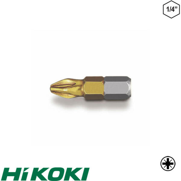 Bitbehajtó 1/4" bit befogás Acél TiN (titán-nitrid) bevonat Nem mágneses A HiKoki biteket arra tervezték, hogy az erőátvitel maximális szintjét nyújtsák, és hosszú élettartamúak legyenek. Ennek érdekében a bitek a következő követelményeknek kell hogy megfeleljenek: kiváló minőségű, válogatott acélból készüljenek megfelelő hőkezeléssel készüljön mindenegyes bit