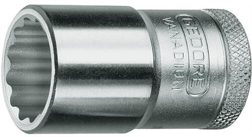 12-szög dugókulcs fej 1/2"" Gedore * Nem szabványos méretek. Kivitel: DIN 3124 – ISO 2725-1, golyóhoronnyal és jó fogású recézéssel. GEDORE 31CrV3 vanádium acélból, köszörült és matt krómozott. Kulcsnyílás: 9* mm Hossz: 38,0 mm Külső Ø: 14,2 mm