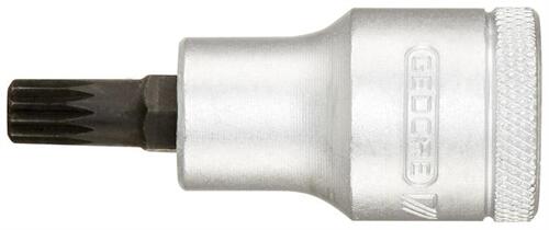 Csavarhúzó fej 1/2"", XZN belső sokszög csavarokhoz Kivitel: DIN 2324. GEDORE 31CrV3 vanádium acélból, köszörült és krómozott, jó fogású keresztirányú recézéssel, hegyek GEDORE vanádium speciális acélból, mangán-foszfátozott. Méret: M10 Hossz: 55 mm Külső Ø: 22,5 mm