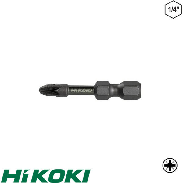 Nagyszilárdságú bitbehajtó ütvecsavarozókhoz 1/4" bit befogás Csúcsminőségű rugóacél Köszörült fúróhegy Nem mágneses Az ütvefúrók folyamatos fejlesztése és az új generációs gépek megjelenése jelentősen megnövelte a nagy nyomatékok használatát. Ez kikényszerítette az igényt a jobb minőségű csavarozóbitekre, ami oda vezetett, hogy a HiKoki kifejlesztette a k