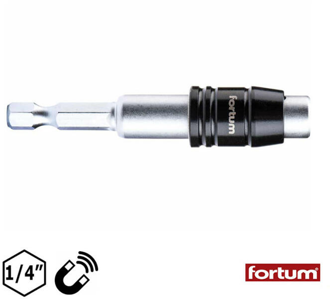 Mágneses bittartó szár 1/4" bit befogás Quick-Lock gyorsbefogással A Quick-Lock funkció mechanizmusa úgy működik, hogy a tartóba való enyhe nyomás után a hegy szilárdan rögzül, és eltávolításához először a külső gyűrűt kell eltolni a fogantyútól, majd a hegyet eltávolítani.