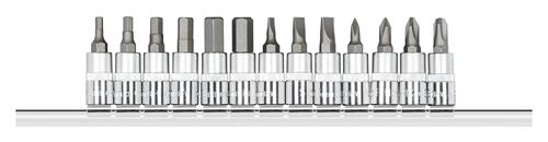 Molibdén-vanádium acélból készült csavarozó bitek (S2 minőség) a tartósság és a csavarokkal való jó tapadás érdekében, A torziós zóna lehetővé teszi a nyomatékkulcsok felfogását, mert csavarozás közben felfogja az erőket és a rezgéseket. Nagyfokú erőleterhelés lehetséges, véd a korai töréstől, 1/4'' hatlapfejű hajtómű