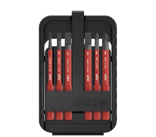 Megkönnyíti a kezelést: A kompakt slimBit doboz optimális rálátással a profilokra egyszerű hozzáféréssel. Fokozza biztonságát: A Wiha slimBitek mélyen lévő csavarok jó és védett elérését biztosítják. Teljes körű védelmet kínál: A szerszámokat egyenként 10 000 V AC feszültséggel vizsgálták be, és 1 000 V AC feszültséghez lettek jóváhagyva. Alkalmazás: speedE