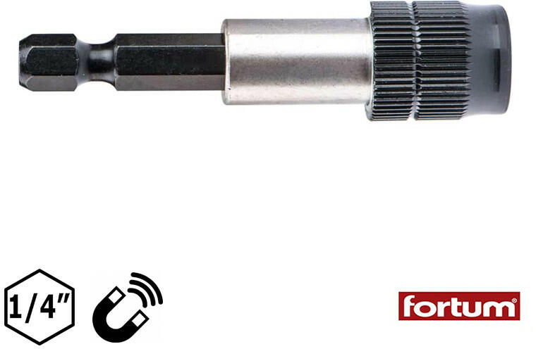 Mágneses bittartó szár 1/4" bit befogás Fix-Clip gyorsbefogással A Fix-Clip funkció mechanizmusa úgy működik, hogy a tartóba való enyhe nyomás után a hegy szilárdan rögzül, és eltávolításához először a külső gyűrűt kell a fogantyú felé tolni, majd a hegyet eltávolítani.