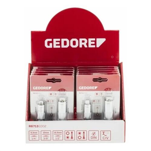 Display 10 darab készlettel: 2 részes Toldó: 68 mm Átalakító: 3/8 ''- 1/4'' és 1/4 ''- 3/8'' Toldó: 85 mm Átalakító 1/2 ''- 3/8'' és 3/8 ''- 1/2''