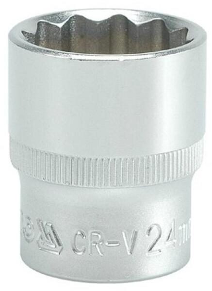 Rögzítés - Gola anya 12 oldalú 1/2", méret 24mm, teljes hossza 38mm, kovácsolt króm-vanádium acélból, AS-Drive, DIN 3121.