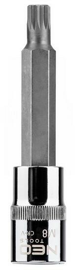 Neo ütvecsavarozó bitek (ref. 09-584) egy 5 db T20 típusú, 50 mm hosszú, professzionális ütvecsavarozó bitből álló készlet. Ezeket 1/4"-os csavarhúzókhoz tervezték. Rendszerrel rendelkeznek, amely védi őket a penge csavarról való lecsúszása ellen. A bitek S2 acélból készülnek. Magas, 21,8 Nm-es meghúzási nyomaték érhető el. A nyomatékelnyelő rendszer megvédi a bite