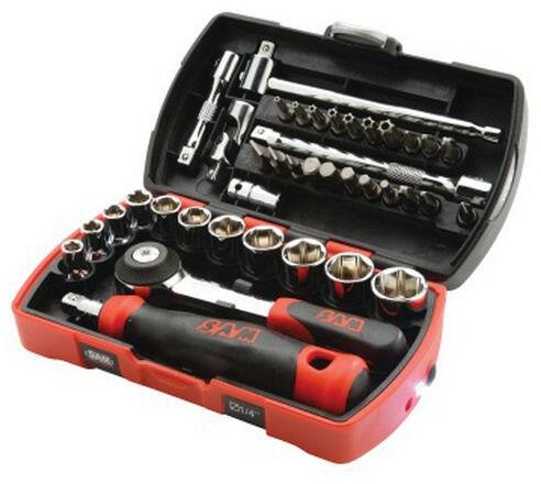 Kompakt bőrönd beépített LED lámpával. Fém csatos záródás. Könnyen hordozható zsebben vagy szerszámtáskában. Fényes polírozott króm bevonat. Ellenáll a műhelyben alkalmazott oldószereknek és ütéseknek.