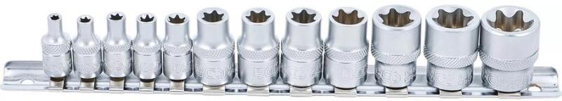 Oldalán bordázott Anyag: Króm - vanádium acél Felület: Krómozott, matt Bruttó súly: 350 g Tartósínnel Készlet tartalma Dugókulcsbetétek E-profil, 1/4" (6,3 mm): E4 - E5 - E6 - E7 - E8 Dugókulcsbetétek E-profil, 3/8" (10 mm): E10 - E11 - E12 - E14 - E16 - E18 - E20