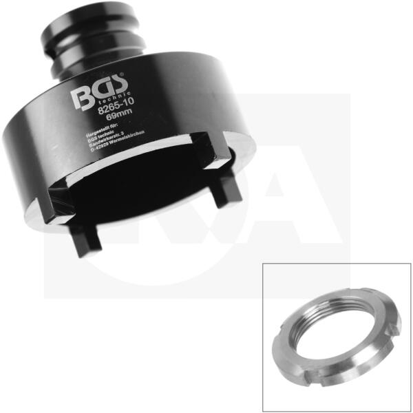 Szabványos, illetve speciális méretű hornyos anyák, csapágyanyák meghúzására és oldására. Alkalmazás: járművek, valamint mezőgazdasági, erdészeti és kerti gépek. Anyaga: króm-molibdén acélötvözetNégykörmös kivitel (négyszög keresztmetszetű fogakkal)Meghajtás: 1/2";A pontos méretezést lásd a másodlagos képen.