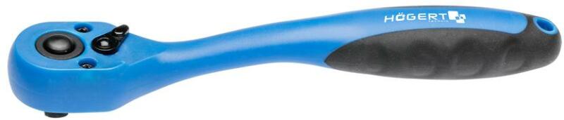 HÖGERT Racsnis hajtókar 1/2", hajlított szárral72T fog, PP markolat (HT1R352) Termék információ: Anyaga : PP+TPR, CrMo acél Méret: 1/2" A racsnis test hőre lágyuló anyagból készült (PP + TPR), amely biztosítja a szerszám megfelelő alakját, ergonómiáját és korrózióvédelmét 5 fokos szögnek köszönhetően a racsni tökéletesen alkalmazható a nehezen hozzáférhető hely