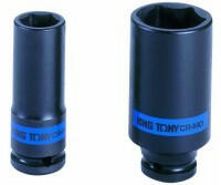 Minőségi King Tony márkájú Gépi hosszúdugókulcsfej1/2˝19mm 443519M King Tony üthető hosszú dugófej jellemzői Méret: 19 mm Hajtó oldali külső átmérő D1: 28 mm Hajtott oldali külső átmérő D2: 30 mm A dugókulcs belső mélysége l: 20 mm Teljes hossz L: 80 mm Súly: 236 g Üthető gépi dugókulcsfej Anyaga: króm-molibdén ötvözött acél Felületkezelés: foszfátozott