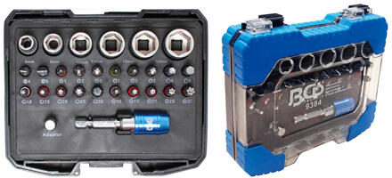 30 csavarhúzóhegyből és foglalatból álló készlet. A készlet PH, PZ, SL, H, T és ortodontikus biteket ta rtalmaz, bitekkel. A bitek S2 acélból készülnek, amelyet nagy keménység és ütésállóság jellemez. Kémiai összetételüknek és hőkezelésüknek köszönhetően a csúcsok hosszú távon megőrzik nagy szilárdsági tulajdonságaikat. Mindez egy praktikus műanyag dobozba