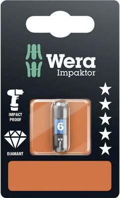 840/1 IMP DC 1 x 6,0x25 Impaktor bit Impaktor bit: Átlag feletti termék élettartam az anyagtulajdonságok legjobb kihasználásának és az optimális geometriának köszönhetően, extrém körülmények között is különösen alkalmas a kereskedelemben kapható Impakt-/ütvecsavarozókhoz, A csiszolatlan gyémánt bevonat a megnövelt súrlódási ellenállással csökkenti a csavarból kic