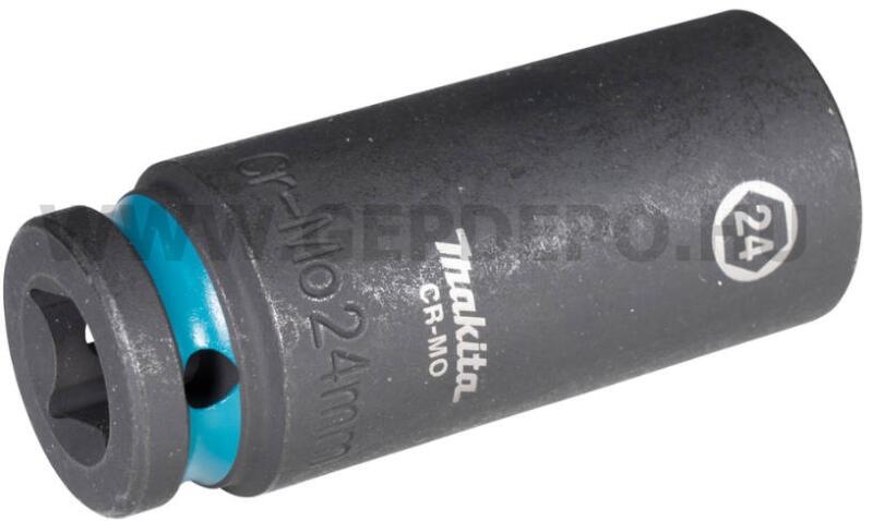 Makita Impact BLACK Cr-Mo 1/2 gépi dugókulcs - 24 x 52 mmRozsdamentesítő kezelés a foglalat felületén, kiváló matt fekete megjelenéssel. Nagyméretű ikonok, átlátszó Makita logóval a foglalat testén. A kék színű O-gyűrű horony növeli a láthatóságot és lehetővé teszi a márka gyors azonosítását. A Makita kiváló minőségű termékeket kínál, amelyek könnyebbé, e