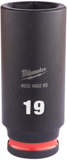 MILWAUKEE Gépi hosszú dugókulcs 3/8" 19 mm CrMo Jellemzők SHOCKWAVE IMPACT DUTY króm-molibdén magas ötvözésű acél a kiváló szilárdságért és tartósságért A 6 pontos felfogásnak köszönhetően kiválóan illeszkedik. Csúszásmentes hatszögletű geometria a foglalat és a rögzítőelem lekerekítésének megakadályozása érdekében. Extra mély kialakítás lehetővé teszi