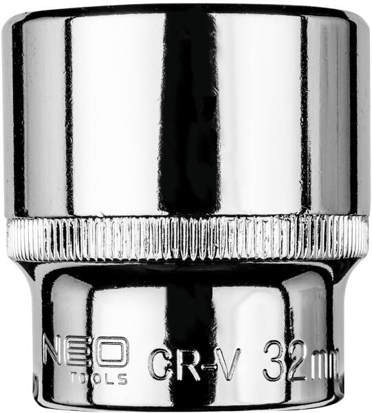 A NEO 1/2" 6- lapú dugókulcs szilárd króm-vanádium acélból készült. A recézett felület javítja a dugókulcs fogását. A szerszám minőségét a gyártói 25 éves garancia igazolja.