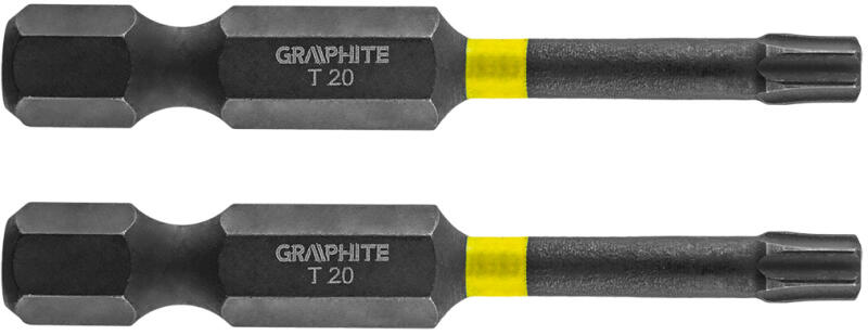 GRAPHITE hosszított, 50mm-es bit ütvecsavarozáshoz. Nagy teljesítményű bitek, amelyeket nagy nyomatékú csavarbehajtóval vagy ütvecsavarozóval történő munkavégzéshez terveztek. Kiváló minőségű S2 acélból készülnek, amelyet fokozott rugalmasság és a mechanikai sérülésekkel szembeni ellenállás jellemez. A nagy nyomaték hatására a torziós zóna csökkenti az erőát