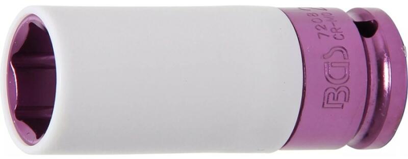 Termékadatok: Fejméret: 22 mm Befogás: 1/2" négyszög Hossz: 85 mm Max. nyomaték: 682 Nm Króm-molibdén acél Színkódolt Műan yag borítással az alumínium felnik védelméért Rögzíthető O-gyűrűvel és szegeccsel
