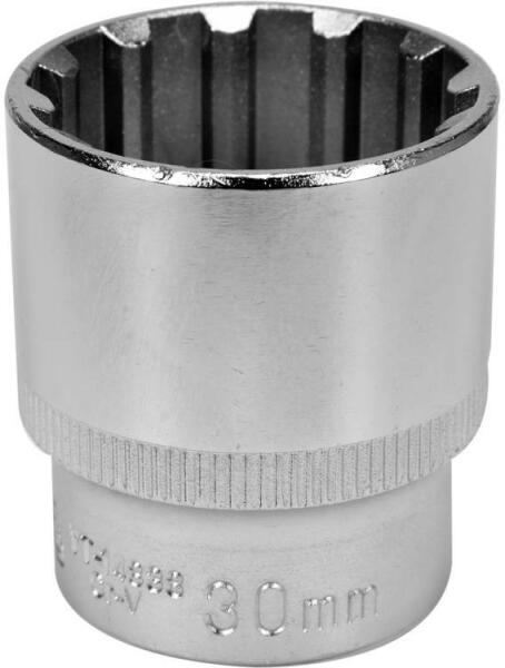 12 szögű kivitel, amely nagyobb nyomatékot eredményez. Krómozott, polírozott, króm-vanádium acél. Belül letört élekkel a csavarfejekre való gyors ráfogás érdekében. Belső négyszög minden oldala horonnyal. Méret: 10 mm Teljes hossz: 62 mm Súly: 50 g