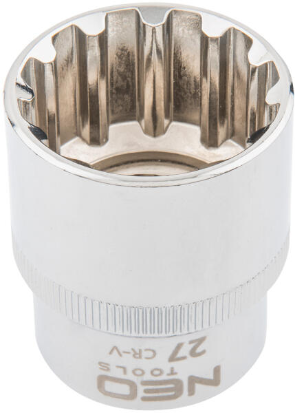 A NEO 1/2"-os Spline dugókulcs króm-vanádium acélból készül, a DIN 3124 szabványnak megfelelően. A dugókulcs szferikus kialakítása igen széles alkalmazási lehetőségeket biztosít, lehetővé téve a Torx, a Spline, a 12-lapú, a metrikus, a colos és a négylapú csavarok kicsavarását is. A szerszám minőségét bizonyítja a TÜV tanúsítvány és a gyártó által nyújtott 2