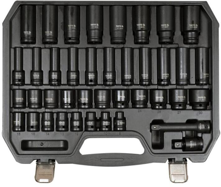 Speciális gépi dugókulcsok pneumatikus eszközökkel való használatra. A foglalatok CrMo SCM-440 króm-molibdén acélból készülnek, amely hosszú élettartamot garantál nehéz körülmények között. Anyaga: CrMo SCM-440 AS-DRIVE Kivitel : 40 darabos 1/2" ütvecsavarozó készlet Méret tartomány: 10 mm - 32 mm, tartalmaz különféle hosszúságú és típusú biteket Csatlakozó mér