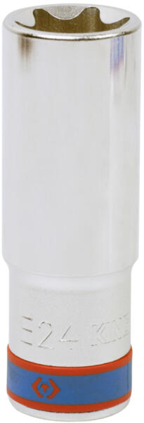 King Tony - UK Erős, - és masszív anyagból készűlt (Chrom-Vanádium acél) hosszított dugókulcs 1/2"-es meghajtással. Tulajdonságok: - Méret: 24 mm - Meghajtás: 1/2" - Fej átmérő: 26,6 mm - Dugófej méret: 23,8 mm - Hosszúság: 77 mm Súly: 220 g