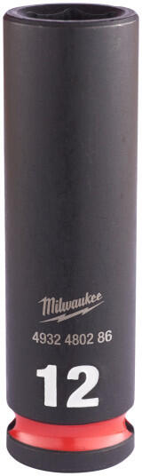 MILWAUKEE Gépi hosszú dugókulcs 3/8" 12 mm CrMo Jellemzők SHOCKWAVE IMPACT DUTY króm-molibdén magas ötvözésű acél a kiváló szilárdságért és tartósságért A 6 pontos felfogásnak köszönhetően kiválóan illeszkedik. Csúszásmentes hatszögletű geometria a foglalat és a rögzítőelem lekerekítésének megakadályozása érdekében. Extra mély kialakítás lehetővé teszi