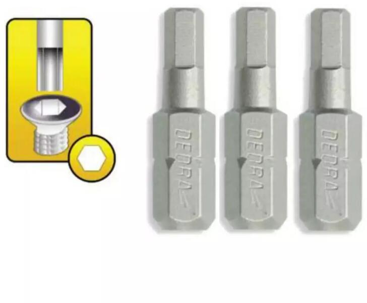 A képen látható méretek példaként szolgálnak. A tényleges méreteket lásd a termékleírásban. H6-os csavarhegyek. A bitek S2 acélból készülnek, amelyet nagy keménység és ütésállóság jellemez. A kémiai összetételnek és a felületkezelésnek köszönhetően a bitek hosszú ideig megőrzik nagy szilárdsági tulajdonságaikat. Tip típus: H6Tip hossza: 25 mmAcél típusa: S