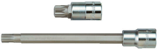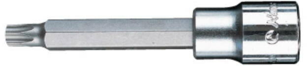 JELLEMZŐK: -Hosszú bordás bitdugófej változat -VW, Audi hengerfej csavarokhoz -A bit anyaga szilícium ötvözött S2-es acél TECHNIKAI SPECIFIKÁCIÓK: A bitfej mérete M6 Hajtott oldal mérete 1/2" Teljes hossz L 100 mm Súly 96 g