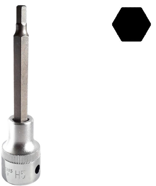 Jonnesway Rátűzőkulcs imbusz fejméretben Tulajdonságok: - Anyaga: Chrome-Vanádium acél - Meghajtás: 1/2" - Recézett kialakitású - Hosszúság: 100 mm - Méret: 5 mm - Aljzat méret: 37 mm - Bit méret: 60 mm Súly: 90 g