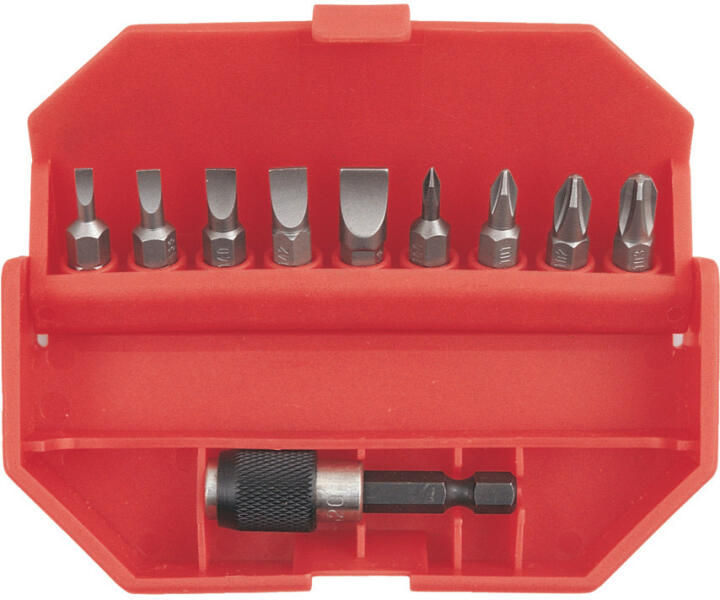 Hornyos: 3, 4, 5, 6 és 8 mm. Kereszthornyos: No. 0, No. 1, No. 2 és No. 3 bitek (25 mm hosszú, 1/4" hatszög), hornyolt, 1/4" hatszög szárú gyorscsatlakozós közbetéttel.