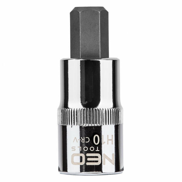 Neo imbusz bit ½-os fészkű dugófeltéten, 55 mm hosszú, a DIN 7422 szabványnak megfelelő. A dugófeltét nagy ellenállóképességű króm-vanádium acélból készül. A hatlapú bit kiváló minőségű S2 acélötvözetből készül. A szerszám minőségét bizonyítja a TÜV tanúsítvány és a gyártó által nyújtott 25 éves jótállás. A Neo márka a professzionális igényeket