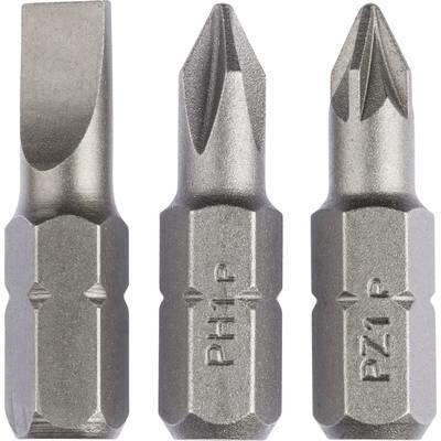 3 részes Csavarozó bit készlet, standard (HEX, PH, PZ) Műszaki adatok: Bit forma: C 6.3 · Bit típus: Bit készlet · Elhajtás: Egyeneshornyú, Kereszthornyú Phillips, Kereszthornyú Pozidriv · Meghajtás: 1/4" (6.3 mm) · Méret, hossz: 25 mm
