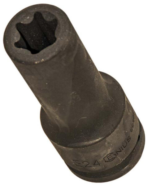 Genius Tools - Hosszú légkulcsfej, belső torx típusú. - Meghajtás: 3/4" - Fej: E-22 - Hosszúság: 110 mm - Anyag:Króm-molibdén acél - A molibdén tartalmú acélok nagy szilárdságúak, szívósak, savállóak és fényezhetők. A krómnak köszönhetően rozsdamentesek. - Fejméret: E22 - Meghajtás: 3/4" - Súly: 0,67 kg