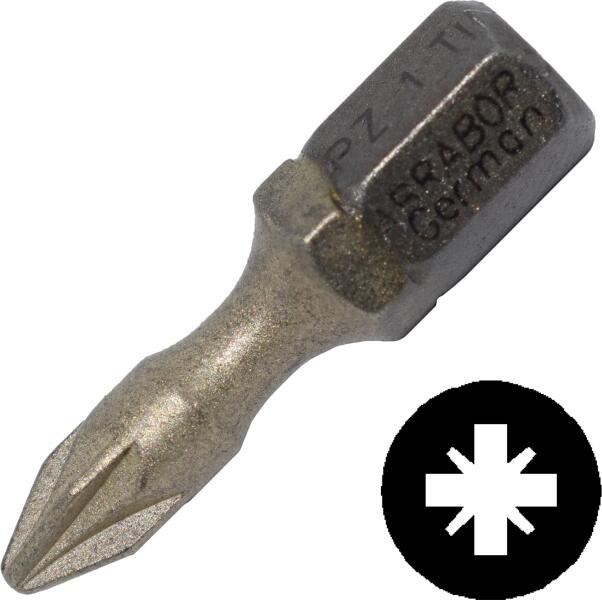 Jellemzők Csava rbehajtó hegy (röviden: bit) rövid (25 mm), ¼ C 6,3 befogással DIN 3126 szerint gépi csavarozókhoz és kézi működtetésű szerszámokhoz. A gyártó által újonnan kifejlesztett felületmegmunkálási eljárás (TiNZrn) során a bit dupla bevontatot kap; a 900°Con végzett titánkezelést egy újabb réteg, mikroérdességű cirkonbevonat követi, melynek köszönhető