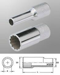 Ipari, mezőgazdasági gépek karbantartásához és szereléséhez legáltalánosabban használt négyszög meghajtó. Rögzítőelemek ki- illetve becsavarásához. 12 szögű kivitel, amely nagyobb nyomatékot eredményez. Krómozott, polírozott, króm-vanádium acél. Belül letört élekkel a csavarfejekre való gyors ráfogás érdekében. Belső négyszög minden oldala horonnyal. Duplán