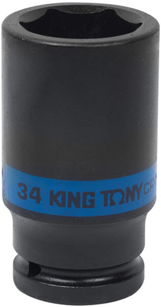 King Tony - UK Chrome-Molibdén acélbóll készített légkulcsfej Tulajdonságok: - Anyaga: Chrome-Molibdén acél - Fekete foszfát felülettel képezve - Meghajtás: 3/4" - 6 lapú (HEX) - Kivitel: Metrikus - Fej méret: 34 mm - D1 Fej méet: 51 mm - D2 Csatlakozás méret: 44 mm - Profil mélysége: 32 mm - Hosszúság: 90 mm - DIN 3121 Súly: 811 g