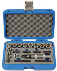 Sérült, rozsdás vagy lekerekített anyák és csavarok eltávolításához, valamint rozsdásodott csavarok eltávolításához nehezen hozzáférhető helyeken. A készlet tartalma: - 12 db speciális profilú dugókulcs, 3/8": 8, 9, 10, 11, 12, 13, 14, 15, 16, 17, 18, 19 mm - 4 db 36 mm hosszú bit: PH2, PH3, lapos 8 mm és 10 mm - 2 db 80 mm hosszú bit: PH2, lapos 8 mm - 1 db 3/8"-os és 5/