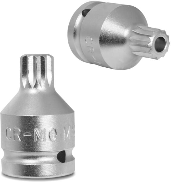 12-szögű kivitel - nagyobb nyomaték átvitelét teszi lehetővé. Jól megfogja a lekerekített csavarfejeket. Belső négyszög minden oldala horonnyal. Csak 1/12 elfordulás szükséges a következő fogáshoz. Méret: 1/2" Teljes hossz: 37 mm Súly: 50 g