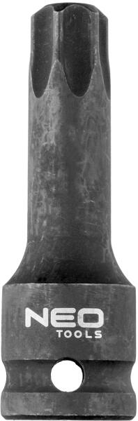 NEO torx bit 1/2", ütvecsavarozókhoz. Króm-molibdén acélból készült - ellenáll a korróziónak, a dinamikus ütésterhelésnek és a magas hőmérsékletnek. A golyós biztosító védelmet nyújt a kulcs kicsúszása ellen. A NEO márka megfelel a szakemberek igényeinek.