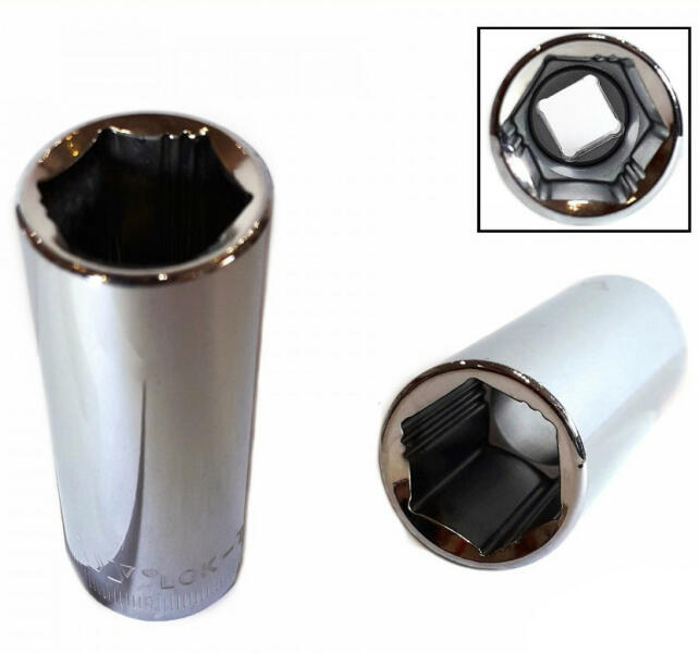 12-szögű kivitel - nagyobb nyomaték átvitelét teszi lehetővé. Jól megfogja a lekerekített csavarfejeket. Belső négyszög minden oldala horonnyal. Csak 1/12 elfordulás szükséges a következő fogáshoz. Méret: 9/16" Teljes hossz: 37 mm Súly: 50 g